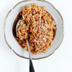• Arched your back, tuck your chin into your chest, and exhale as you draw your belly button toward your spine (this is the “cat” position).
